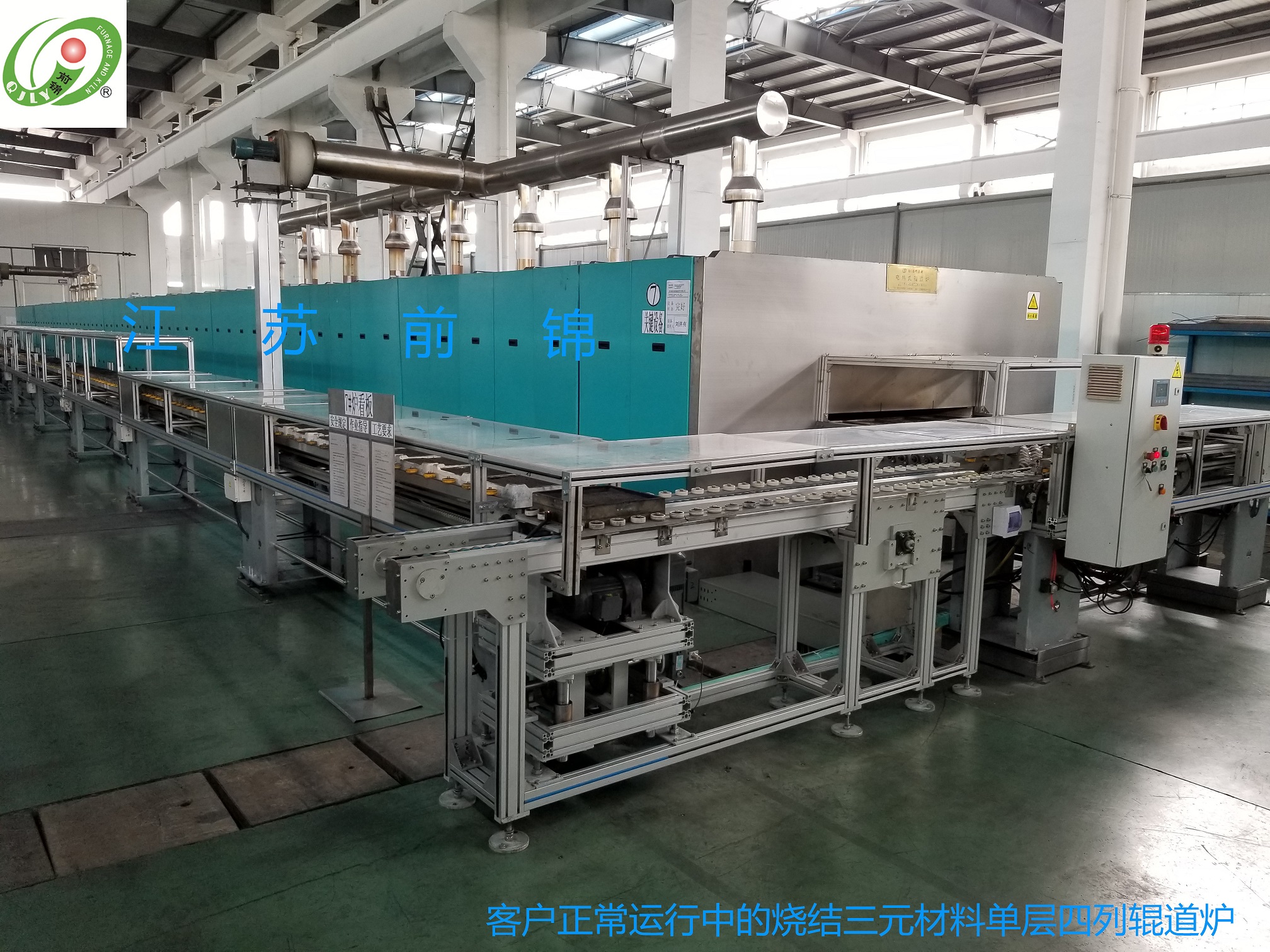 適用工藝:鈷酸鋰、錳酸鋰、三元材料、氧化鈷等材料的連續(xù)燒成 設(shè)計單位:江蘇前錦爐業(yè)設(shè)備有限公司 作者:劉俊 前言:電池材料的好壞,沒有界限,一是來自材料工藝本身的處理,另外就是設(shè)備選型和設(shè)計細節(jié)的關(guān)鍵所在,本文是作者在鈷酸鋰、錳酸鋰、氧化鈷、三元材料等材料十年以來在一次、二次燒結(jié)過程中吸取大量實踐經(jīng)驗并完全復(fù)制日本同類型窯爐而最終投向市場的一種高端輥道窯。文章內(nèi)容為設(shè)計細節(jié),望作參考,為鋰電貢獻僅有力量。 關(guān)鍵詞:鈷酸鋰 錳酸鋰 富鋰基錳酸鋰 高壓鈷酸鋰 高鎳三元材料 四氧化三鈷 氧化鈷 鈦酸鋰 匣缽 坩堝 承燒板 推板 石墨匣缽 石墨坩堝 鋰電池負極材料鈦酸鋰 一:總則 1.1本設(shè)計書僅限于江蘇前錦爐業(yè)設(shè)備有限公司RGD-29.16-1520單層四列大氣窯爐設(shè)備的設(shè)計、制造、安裝、調(diào)試及售后服務(wù)。 1.2本設(shè)計書提出的技術(shù)要求為甲乙雙方前期技術(shù)交底協(xié)商后的技術(shù)標(biāo)準要求,明細請參照:(附件一)在簽訂合同后,甲方保留對本協(xié)議書提出補充要求和修改的權(quán)利,乙方允諾予以配合。如提出修改,具體項目和條件由甲乙雙方商定后執(zhí)行。 1.4 本設(shè)計書作為訂貨合同的附件,與合同正文同時生效。 1.5 本設(shè)計書只在本次訂貨事宜中有效。 二:供貨范圍及商家信息 2.1 供貨產(chǎn)品名稱 RHK-29.16-1520單層四列大氣窯爐 2.2 規(guī)格型號 定制設(shè)備 2.3 數(shù)量 1套 2.4 生產(chǎn)廠家 宜興市前錦爐業(yè)設(shè)備有限公司 三:技術(shù)標(biāo)準 3.1 生產(chǎn)線所有零部件、控制元件的設(shè)計、加工、安裝、調(diào)試均以現(xiàn)有國家標(biāo)準為最低標(biāo)準執(zhí)行,系統(tǒng)設(shè)計參照全年連續(xù)運行300天安全性能為基礎(chǔ)標(biāo)準。(耗材及易損件除外) 3.2 電器標(biāo)準:西門康可控硅模塊移相觸發(fā)(SCR)控溫,日本智能儀表,日本進口觸發(fā)器,西門子低壓電器(斷路器、交流接觸器、電流電壓表、電流互感器、、中間繼電器、電器附件等)安徽天長儀表廠K、S分度熱電偶。 四:設(shè)備運行環(huán)境條件 4.1 海拔高度:小于1500M 4.2 環(huán)境濕度:-20-30保持正常工作 4.3 環(huán)境空氣粉塵含量:40g/m3 4.4 環(huán)境溫度:-10℃—45℃保持正常工作 五:技術(shù)要求 5.1 主要技術(shù)參數(shù) 5.1.1電源參數(shù) 交流電380VAC 正負10VAC 5.1.2功率參數(shù) 參照 附件一 5.1.3 配電總電源接地電阻≤5歐姆 5.2 主要技術(shù)性能 明細參照 附件一 5.2.1 最高溫度: 1100℃ 5.2.2 爐膛尺寸: 29160L×1520W×150H(mm) 5.2.3 有效尺寸: 29160L×1320W×115H(mm) 5.2.4 設(shè)備外形: 32160L×2320W×2700H(mm) 5.2.5 額定功率: 420KW 5.2.6 保溫功率: 280KW(和進、排氣量及輸送速度有關(guān)) 5.2.7 爐側(cè)壁溫度:50oC+室溫。離輥棒孔及加熱棒孔的距離≥150mm。 5.2.8 加熱元件: 1-4區(qū)用電阻絲棒φ45:66+5(備件)=71根(瑞 典進口)其余溫區(qū)用φ35硅碳棒(德國進口):120+10(備件)=130根 5.2.9 加熱方式: 電阻絲棒和硅碳棒皆為上下水平加熱,每個溫區(qū)上層加熱元件需要加裝保護套管(電阻絲保護管φ45,碳棒保護管φ60),防止?fàn)t內(nèi)氣氛對加熱元件的腐蝕。下層加熱元件不需要加保護套管。 5.2.10 溫區(qū)劃分: 14個溫區(qū),1溫區(qū)為單點控溫,2~14溫區(qū)為上下控溫;全爐共27個控溫點。爐尾降溫區(qū)設(shè)4個測溫點。 5.2.11 爐膛材料: 內(nèi)層加熱區(qū)除5-8溫區(qū)的頂部材料為鋯鎂磚材質(zhì),其余爐膛材料為剛玉莫來石材質(zhì);保溫層由內(nèi)到外依次為:莫來石聚輕磚、06輕質(zhì)磚、陶瓷纖維板和纖維棉。 5.2.12 進氣設(shè)計: 每個溫區(qū)設(shè)1路進氣,流量計量程:0~15m3/h 降溫區(qū)設(shè)4路進氣,流量計量程:0~50m3/h。分別由2臺鼓風(fēng)機送風(fēng)。 5.2.13 排氣設(shè)計: 升溫和恒溫區(qū)共設(shè)8組排氣煙囪,非接觸方式接入由8個分管道接口的不銹鋼總管上,并通過離心風(fēng)機強制抽排。降溫區(qū)設(shè)6組排氣煙囪,非接觸方式接入由6個分管道接口的不銹鋼總管上,并通過離心風(fēng)機強制抽排。 5.2.14 設(shè)備組成:進料架長:3000mm,主爐體長29160mm,進料架長:3000mm。 5.2.15 傳動方式:變頻電機+擺線針輪減速機+鏈傳動+斜齒輪傳動。 5.2.16 傳動介質(zhì):φ55×φ45氧化鋁陶瓷輥棒動力傳輸,324+10(備件)=334根。 5.2.17 傳送速度:1000mm/h~3240mm/h,常用速度:1620 mm/h。 5.2.18 控溫方式:采用可控硅移相觸發(fā)方式(SCR)控溫 5.2.19 功率輸出:SCR控制,數(shù)量:27個,具有軟啟動、軟關(guān)斷、限流及過流保護等功能。 5.2.20 控制方式:0-100%連續(xù)可調(diào)。 5.2.21 功率測量:有功電度表,每路有一塊電流表。 5.2.22 SCR冷卻:散熱片+風(fēng)機風(fēng)冷。 5.2.23 溫控儀表;日本數(shù)字智能儀表,0-1000℃、PID連續(xù)控制,溫度補償,超溫、斷偶等聲光報警功能。 5.2.24 供電能力:三相五線380V±10%,50Hz,450KVA 5.2.25 現(xiàn)場設(shè)施:在用戶現(xiàn)場,電爐安裝應(yīng)有相配套的電爐基礎(chǔ)(基礎(chǔ)承重要求1.5T/m2)及電纜布放電纜溝或橋架(用戶制備)。 設(shè)備圖片: